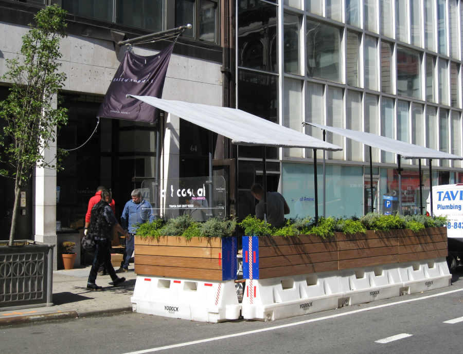 Last fall, we partnered with Brooklyn-based design firm FANTÁSTICA to pilot an innovative curbside seating module that created more outdoor seating for people to meet, eat and work, as part of DOT’s Street Seat program. You can visit the Street Seat, located at 64 West 21st Street, outside of Foreigner Coffee & East of Normal's studio space.